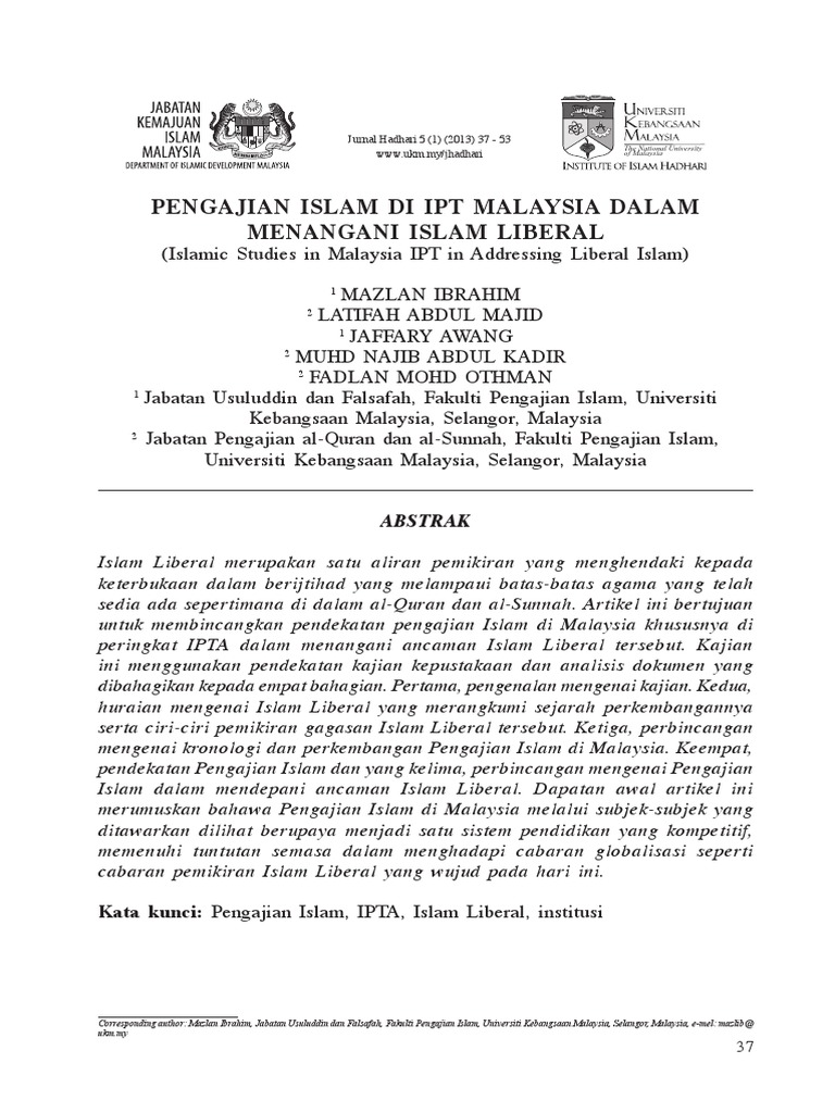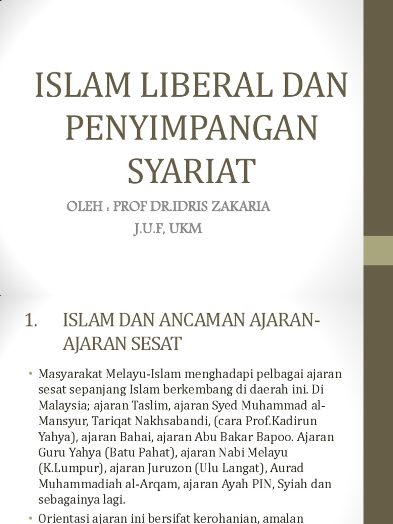 Islam dalam konteks hubungan antara agama di malaysia islam malaysia sebagai masyarakat berbilang agama harus menyedari tentang kepentingan wujudnya hubungan baik antara agama. Islam in malaysia is represented by the shafi'i version of sunni theology and jurisprudence, while defining malaysia constitutionally a secular state. Secara kesimpulannya, pengajian islam di malaysia telah dan sentiasa memainkan peranan penting dalam menangani masalah penularan fahaman islam liberal. (belum dikira puluhan ajaran sesat lain yang masih bernafas). Liberal di malaysia mengupas isu berkenaan ancaman fahaman liberalisme dalam.