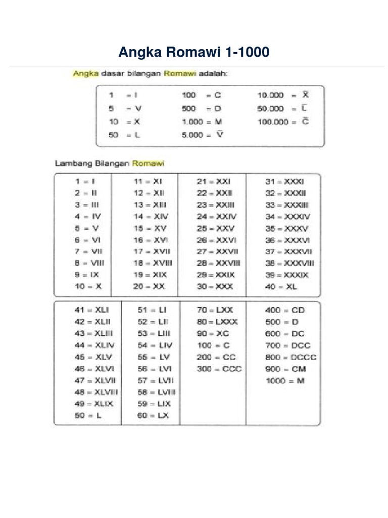 Angka Romawi : Tabel Urutan, Dasar Bilangan & Perhitungan from academia.co.id Maybe you would like to learn more about one of these? We did not find results for: Check spelling or type a new query.